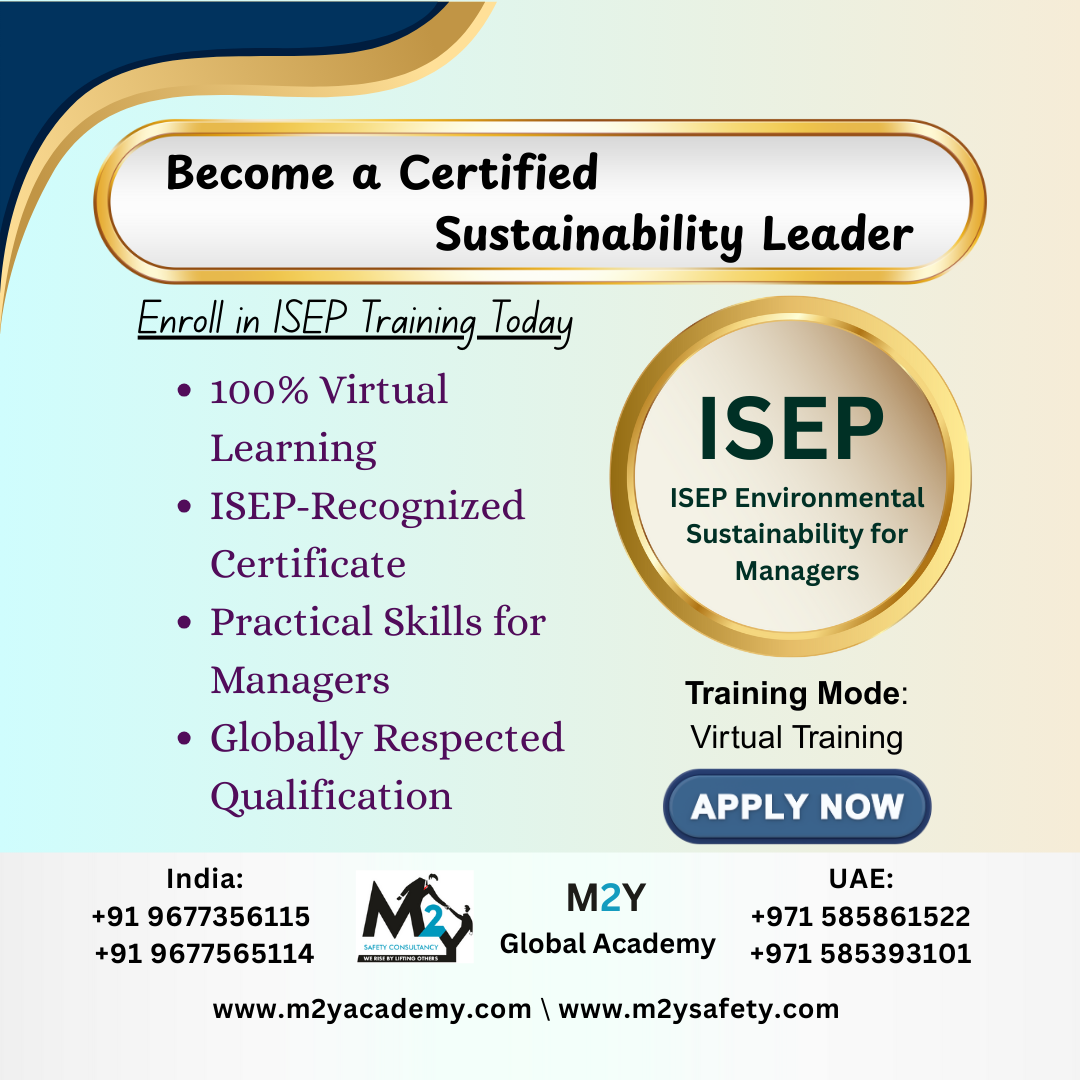 Priya, an operations lead in a Chennai-based textile company, took the ISEP Environmental Course training online with M2Y Academy. She applied the circular economy strategies learned during the course to reduce fabric waste by 35% over six months, saving her company thousands and improving its sustainability report score.