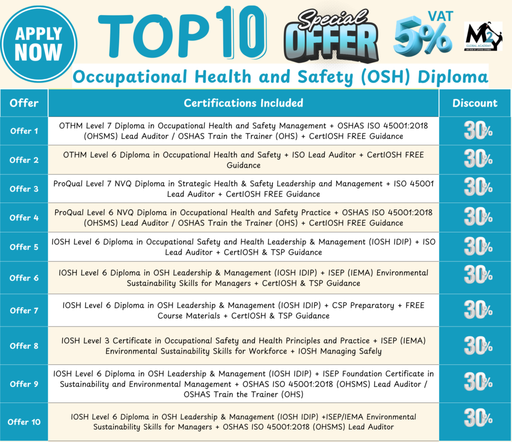 This diploma is more than a credential—it’s a career-accelerating, competency-based qualification that demonstrates real-world expertise in occupational health and safety (OHS). If you’re seeking Chartered Membership (CMIOSH) of IOSH or planning to step into a senior HSE role, this diploma could be your ideal next move.